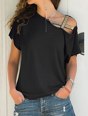 Mujer Blusa de hombro al descubierto Camiseta Camiseta superior Retazos Color sólido Moda Clásico Casual Manga Corta Cuello Barco Tops regulares Diario Noche Fin de semana Negro Blanco Rosa Vino Azul