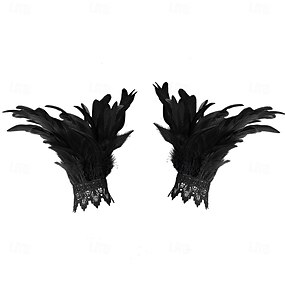 Carnaval 2026 Accesorios de Samba del Carnaval de Río Puños de Muñeca de Plumas Negras para Mujeres Puños de Raso de Encaje Disfraz de Actuación Festival Brasil
