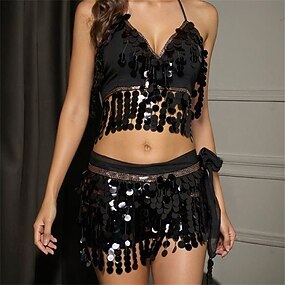 Ropa de baile samba Falda de danza del vientre con top corto Lentejuelas Conjunto de faldas con flecos Ropa de fiesta para danza rave Vestuario de actuación