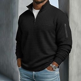 Hombre Camisetas polo con diseño de gofre Con Texturas Casual Deporte Cremallera de un cuarto Manga Larga Moda Cómodo Cerrar Bolsillo Otoño invierno Primavera & Otoño Temporadas Cruzadas Negro Blanco