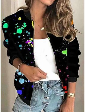 Mujer Chaqueta de bombardero Cómodo Transpirable Cremallera Estampado Casual Geométrico Vacaciones Calle Casual Ropa Cotidiana Cremallera Corto Escote Chino Ajuste regular Manga Larga Ropa de calle