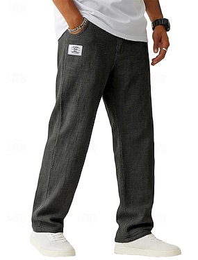 Hombre Pantalones de lino Pantalones Pantalones de verano Pantalones anchos Pantalones de playa Bolsillo Pierna recta Color sólido Comodidad Transpirable Longitud total Casual Diario Exterior