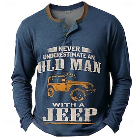 Camiseta gráfica de manga larga Henley para hombres nunca subestimes a un anciano con un Jeep camiseta de estilo de vida de pasatiempos