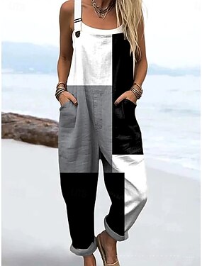 Mono de Mujer Activo Gráfico Sin Mangas Pierna Ancha Con Bolsillos Botones Vacaciones Ajuste Suelto Negro Blanco Púrpura Verano