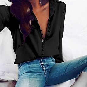 Mujer Camisa Botones Plano Diario Elegante Básico Manga Larga Cuello Camisero Tops regulares Diario Trabajo Festivos Negro Blanco Amarillo Primavera Otoño