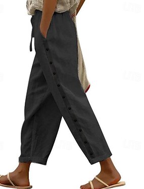 Mujer Pantalones de verano 100% Algodón Pantalones Vacaciones Ropa de calle Casual Longitud total Media cintura Color sólido Correa Bolsillo Botón lateral Cómodo Transpirable Rígido Diario Exterior