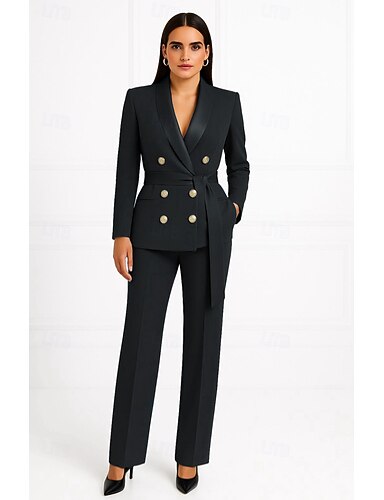 Mujer Trajes de 2 piezas Formal Invitado a la boda Elegante Vintage Sencillo Manga Larga Hasta el Suelo Hasta el Tobillo Solapa pico Botonadura Doble