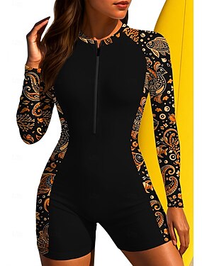 Mujer Regular Camiseta Protección Solar Surf Traje de baño Boyleg Floral Tropical Cerrar Acolchado extraíble Cremallera delantera Protección solar UV UPF50+ Utra ligero (UL) Manga Larga Bañadores