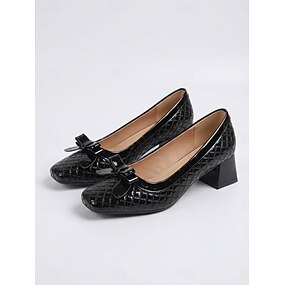 Zapatos de tacón negro con efecto cocodrilo para mujer: cómodos zapatos de oficina de tacón bajo y bloque con detalle de lazo para el trabajo y reuniones de negocios. &desplazamientos profesionales