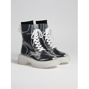 Botas de lluvia transparentes e impermeables para mujer con calcetines – botas de combate con plataforma gruesa y cordones, suela antideslizante para días de lluvia, uso al aire libre y estilo