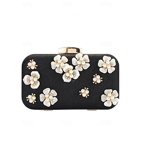 Cartera de mano con diseño floral en 3D para mujer con detalles de perlas y cadena dorada: elegante bolso de noche para bodas, fiestas y ocasiones formales en plata, negro y dorado