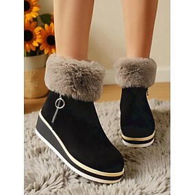 Botines negros de piel sintética para mujer con detalle de cremallera: calzado de invierno acogedor para salidas informales, días de nieve y clima frío.