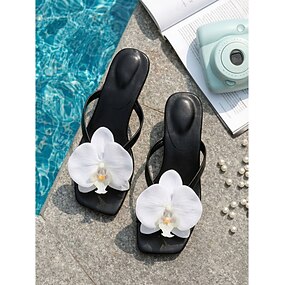 Sandalias de dedo blancas románticas con estampado floral 3D para mujer: chanclas cómodas y acolchadas con un gran aplique floral, ideales para la piscina de hoteles de lujo y complejos turísticos de