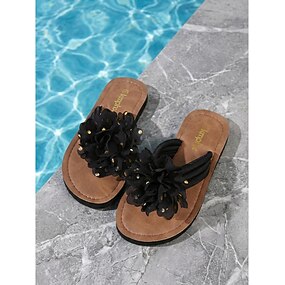 Chanclas con lazo floral para mujer: sandalias de playa informales con suela suave y un diseño bonito para la piscina, el resort y las vacaciones de verano.