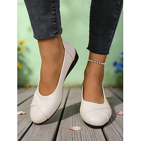 Zapatos planos casuales blancos para mujer: zapatos cómodos sin cordones para el trabajo y el uso diario.