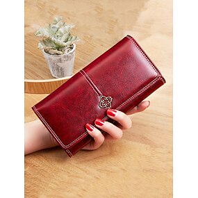 Cartera de piel sintética roja para mujer con múltiples ranuras para tarjetas y bolsillo para monedas con cremallera: un bolso de mano elegante y funcional para el uso diario