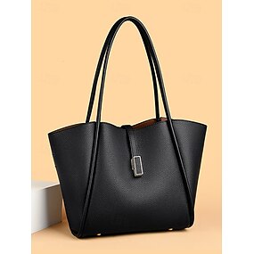 Bolso de mano de piel sintética verde para mujer, diseño sencillo, decoración con hebilla dorada: bolso de mano elegante y práctico para el trabajo, las compras y el uso diario, negro, blanco y rojo