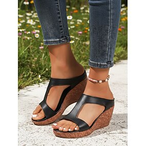 Sandalias de cuña color caqui para mujer: tacones de plataforma con punta abierta para verano, uso diario y vacaciones.