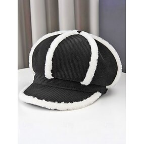 Gorro de pana de poliéster grueso para mujer con ribete de piel sintética, disponible en varios colores: perfecto para la moda de otoño e invierno.