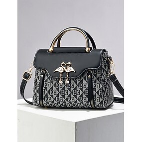 Elegante bolso bandolera beige para mujer: diseño de monograma de lujo con colgante de corazón y asa superior