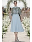 Corte A Vestidos Hasta el Tobillo Vestido Midi Vestido de Fiesta Vestido Cóctel Vestido de Madrina Manga Corta Cuello Barco Escote de ilusión Elegante Vintage Lujoso Formal Invitado a la boda El