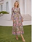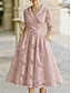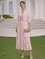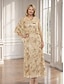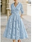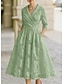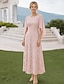 Corte A Hasta el Tobillo Vestido de madre de la novia Vestido con bordado floral Vestidos de coctel Elegante Diario Floral Manga Larga Escote en Pico Fiesta de jardin Boda Encaje con Estampado flor