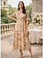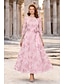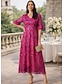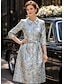 Corte A Hasta el Tobillo Vestido Midi Vestido Invitada Boda Vestido de Madrina Manga 3/4 Diseño Elegante Vintage Formal Invitado a la boda Fiesta de Boda Jacquard con Estampado flor Cinta / Lazo