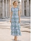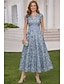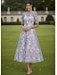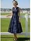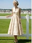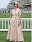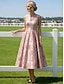 Corte A Hasta el Tobillo Vestido Invitada Boda Vestido de Madrina Manga Corta Diseño Elegante Vintage Brillos Y Estrellas Formal Invitado a la boda El derby de Kentucky Organdí Jacquard con Estampado