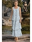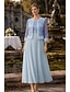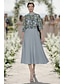 Dos Piezas Corte A Hasta el Tobillo Vestido Midi Vestido Invitada Boda Vestido de Madrina Sin Mangas Manga 3/4 Cuello Barco Elegante Sencillo Minimalista Formal Semi-formal Gasa Encaje con Bordados