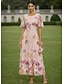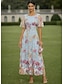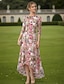 Corte A Hasta el Suelo Hasta el Tobillo Vestido Invitada Boda Vestido formal Vestido de noche Vestido de Madrina Manga Corta Diseño Elegante Vintage Formal Satén con Impresión