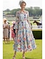 Corte A Hasta el Tobillo Vestido Midi Vestido Invitada Boda Corte Ancho Vestido de Madrina Media Manga Escote de ilusión Escote Barco Camiseta con cuello redondo Elegante Vintage Formal Invitado a la