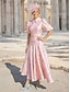 Corte A Hasta el Tobillo Vestido Midi Vestido formal Vestido de Madrina Manga 3/4 Cuello vuelto holgado Elegante Vintage Formal Satén con Cuentas