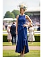 Funda Columna Hasta el Tobillo Vestido Midi Vestido Invitada Boda Vestido formal Vestido Derby Vestido de Madrina Manga Corta Escote Barco Hombros Caídos Elegante Vintage Formal El derby de Kentucky