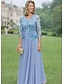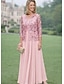 Corte A Vestidos Hasta el Tobillo Vestido Cóctel Vestido Invitada Boda Vestido de Madrina Manga Larga Cuello Barco Elegante Vintage Formal Encaje Tul con Bordados Apliques Flor