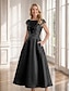 Corte A Hasta el Tobillo Vestido formal Vestido de Madrina Manga Corta Escote Barco Elegante Vintage Embellecido cóctel Formal Invitado a la boda Satén con Detalles con Perlas