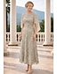 Corte A Vestidos Hasta el Tobillo Vestido de Fiesta Vestido Cóctel Vestido Invitada Boda Vestido de Madrina Manga Corta Cuello Barco Escote de ilusión Elegante Vintage Lujoso Formal Invitado a la