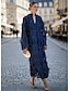 Corte A Vestidos Hasta el Tobillo Vestido maxi Vestido de Fiesta Vestido Cóctel Vestido de Madrina Manga Larga Escote en Pico Elegante Vintage Lujoso Formal Invitado a la boda El derby de Kentucky