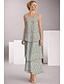 Dos Piezas Corte A Traje de vestir Hasta el Tobillo Vestido Invitada Boda Corte Ancho Vestido de Madrina Sin Mangas Manga Larga Camiseta con cuello redondo Elegante Sencillo Embellecido Formal