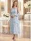 Corte A Vestidos Vestido alto-bajo Hasta el Tobillo Vestido Cóctel Vestido de Madrina Manga 3/4 Escote Barco Elegante Sencillo Formal Invitado a la boda Semi-formal con Volantes Bordados Apliques