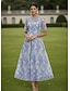 Corte A Vestidos Hasta el Tobillo Vestido de Fiesta Vestido Cóctel Vestido de Madrina Media Manga Camiseta con cuello redondo Elegante Vintage Formal Invitado a la boda Festivos Gasa con Estampado
