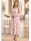 Corte A Vestidos Hasta el Tobillo Vestido Midi Vestido Invitada Boda Vestido de Madrina Manga Corta Cuello Barco Escote en Pico Elegante Pastel Formal Invitado a la boda Semi-formal Encaje con Flores