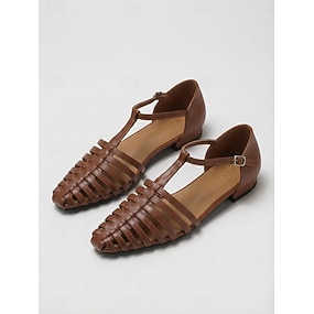 Sandalias gladiadoras vintage marrones para mujer: cómodas sandalias planas con tiras y puntera cerrada. &Hebilla ajustable en el tobillo para vacaciones en resorts y visitas turísticas. &viajes de