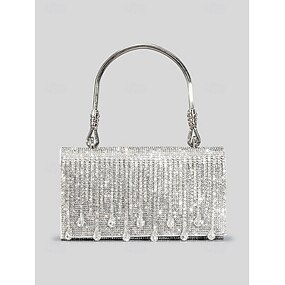 Elegante bolso de noche de cristal para mujer con cadena plateada, detalle de cuentas y cremallera de alta calidad, perfecto para bodas, fiestas y eventos formales.