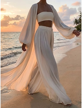 Mujer Conjuntos de dos piezas Conjuntos de pantalones Bolero Manga Larga Escote en Pico Plano Moda Ropa de calle Diario Playa Vacaciones Blanco Verano Holgado