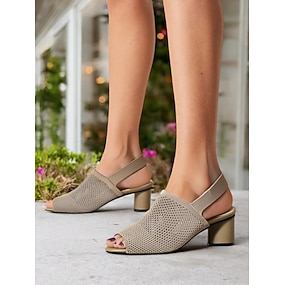 Sandalias Flyknit con punta abierta y tacón cuadrado para mujer: elegantes y transpirables, ideales para la oficina y para looks informales.
