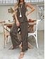 Mujer Normal Mono Activo A Rayas Sin Mangas Escote en Pico Botones Bolsillo Vacaciones Diario Holgado Caqui Azul claro Verano