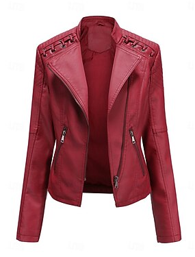 Mujer Chaqueta de cuero sintético Chaqueta de motociclista Exterior Calle Ropa Cotidiana Otoño Invierno Corto Abrigo Ajuste regular Mantiene abrigado Transpirable Elegante Casual Chaquetas Manga Larga