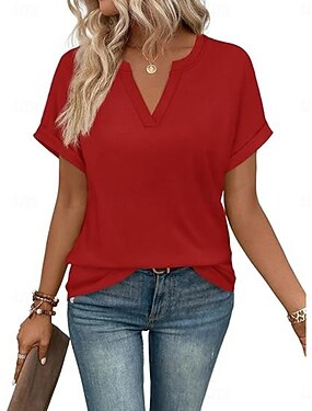Mujer Camiseta Camiseta superior Color sólido Moda Clásico Casual Manga Corta Escote en Pico Tops regulares Diario Noche Fin de semana Verde Ejército Rojo Morado Rosa Brillante Gris Verano Primavera
