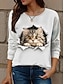 Camiseta de mujer de cuello redondo de manga larga con túnica Gato Moderna Casual Tops Regulares Daily Fin de semana Print Blanco Amarillo Rojo Azul Azul Polvoriento Otoño Invierno
