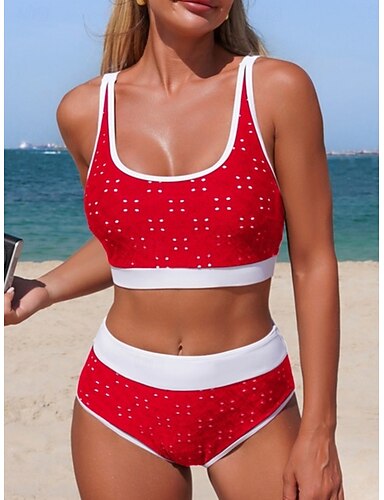 Bikini de Mujer de 2 Piezas Traje de Baño Colorblock Alta Cintura Moda Estilosa Gráfico de Lunares Sin Mangas